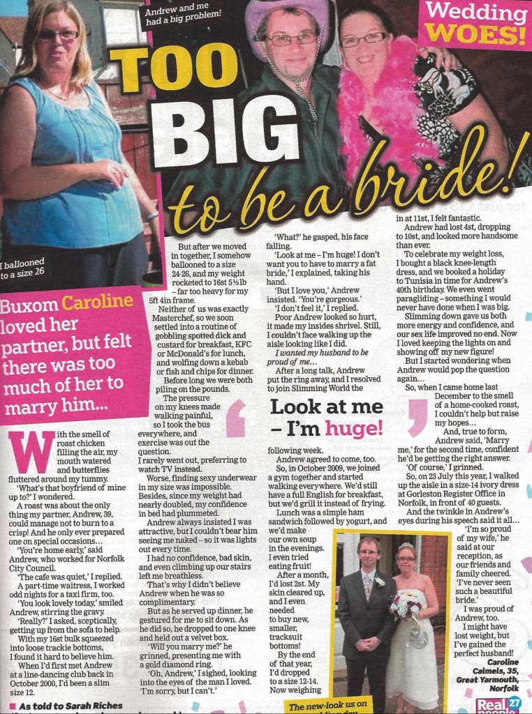 When we heard Caroline Camels had turned down her partner Andrew’s wedding proposal because she didn’t want them to be a fat bride and groom and that they had gone on to lose a staggering ten stone between them, we knew a magazine would be interested in finding out more. This week, the couple’s story […]